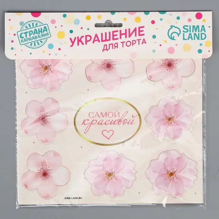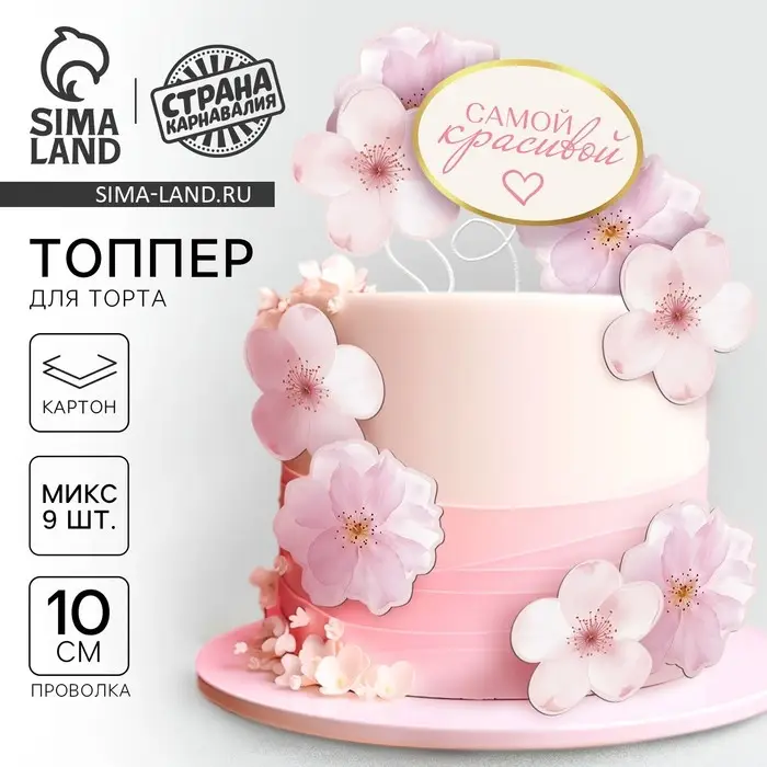 Топперы для торта «Цветочки», картон на подложке, с проволокой