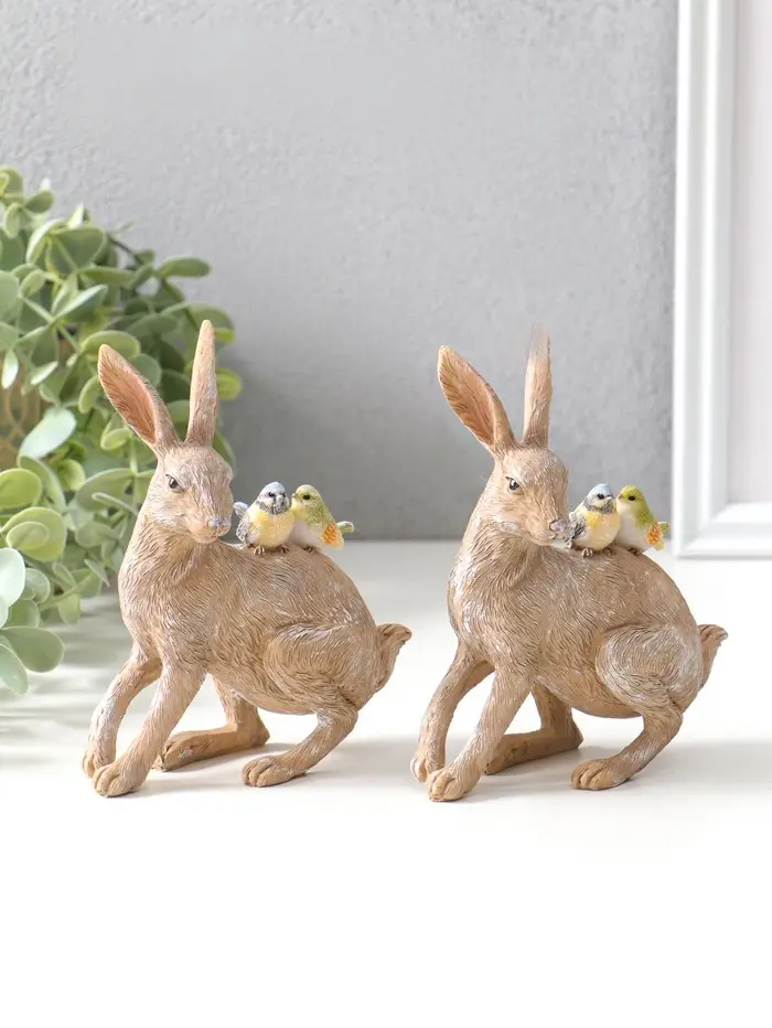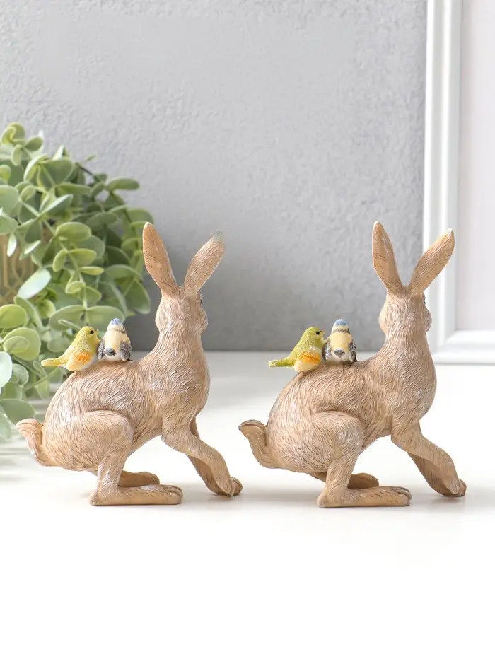Сувенир полистоун "Кролик с синичками на спине" набор 2 шт 14х5,5х11,5 см