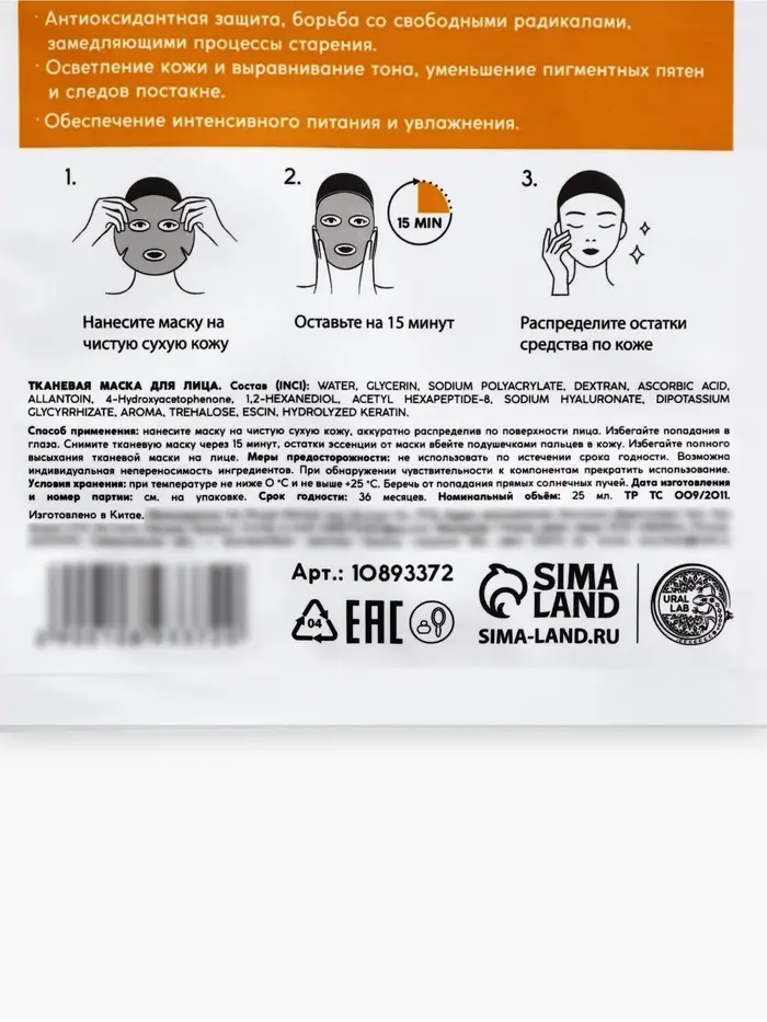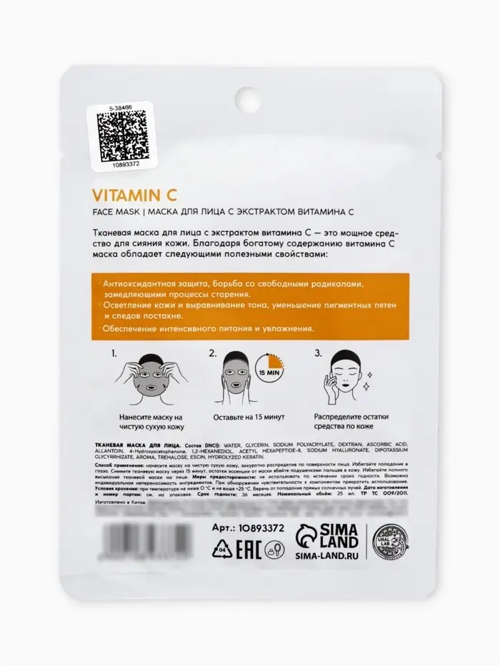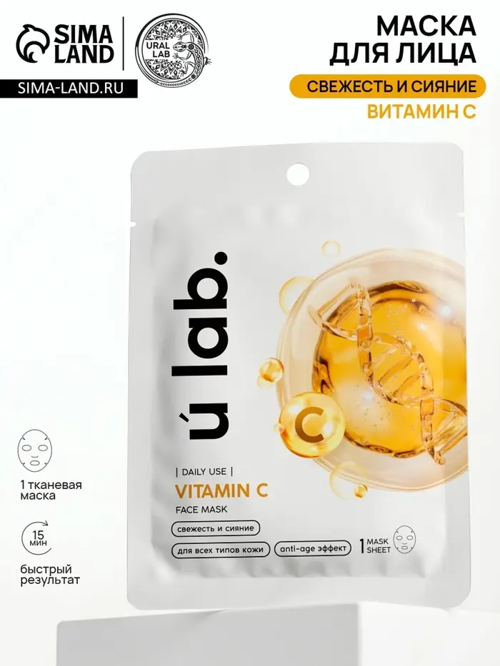 Маска для лица тканевая с экстрактом витамина С, anti-age эффект, ULAB