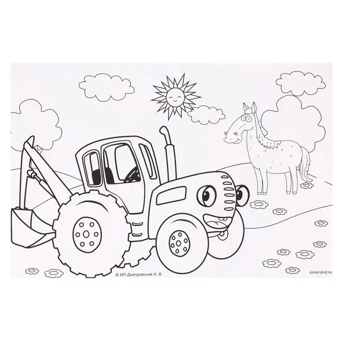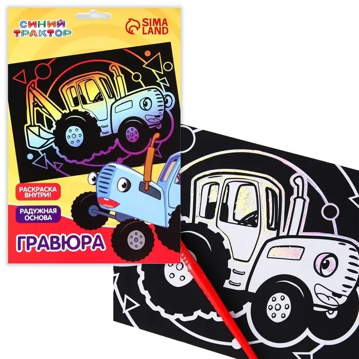 Гравюра детская, со стекой, Синий трактор