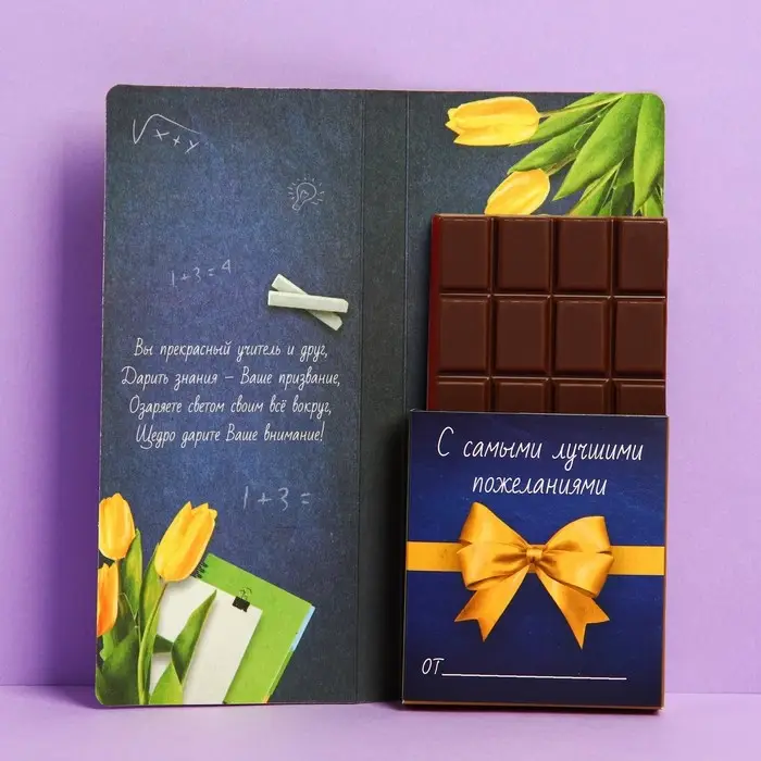 Открытка с местом под шоколадку «Учителю: Для лучшего учителя»