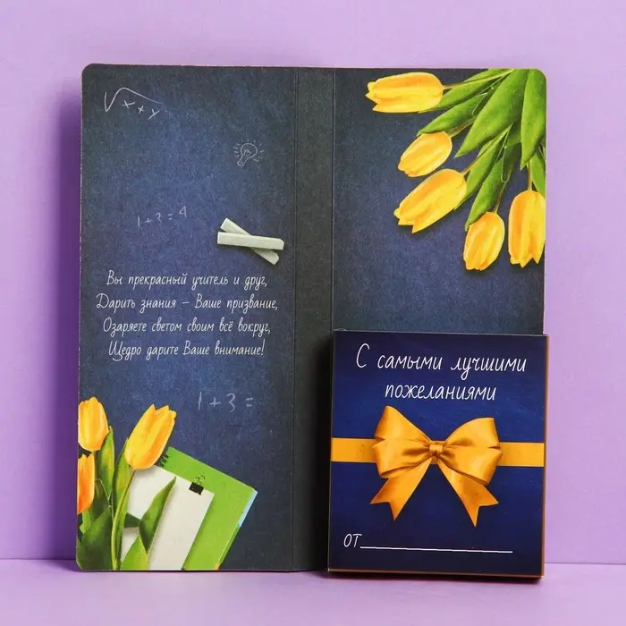 Подарочный конверт с местом под шоколад «С днём учителя»