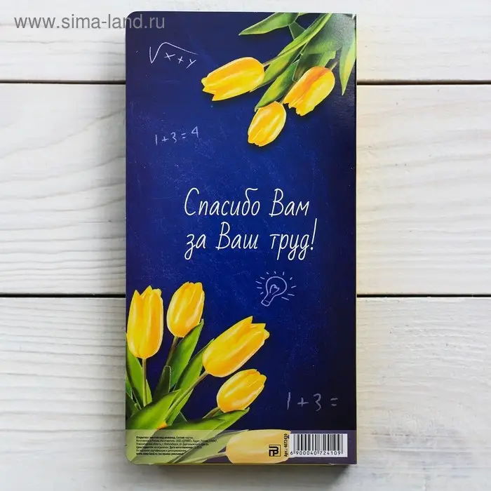 Открытка с местом под шоколадку «Золотому учителю», размер 19см х 8,1см, плотность 200 гр
