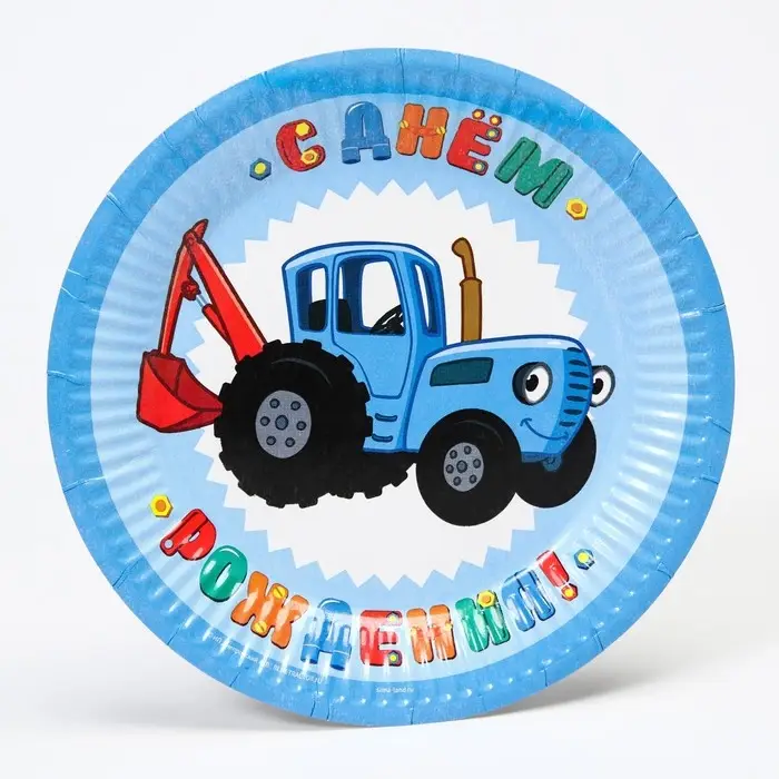 Бумажная тарелка «С Днём Рождения!» в стиле «Синий Трактор» — добрая, яркая и наполненная теплом! Диаметр 18 см — идеален для кусочка торта, бутербродов или фруктов. На тарелке — улыбающийся Синий Трактор, создающий атмосферу заботы, дружбы и праздника. Изготовлена из плотного, безопасного картона — не мнётся и не промокает. Идеальна для дня рождения. Пусть каждый укус дарит ощущение доброты и надёжности — ведь с Синим Трактором рядом всё по плечу!
