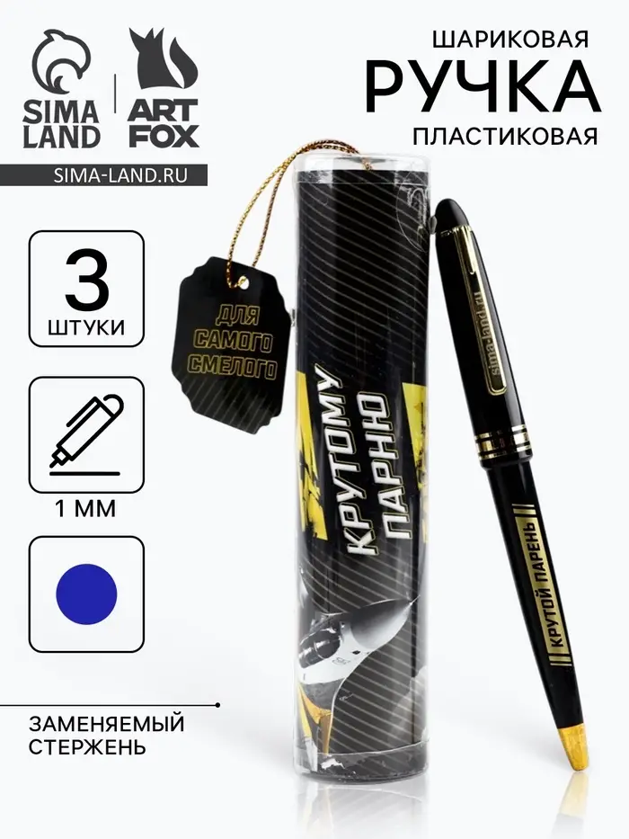 Ручка шариковая синяя паста в тубусе, набор 3 шт. «Для самого смелого»