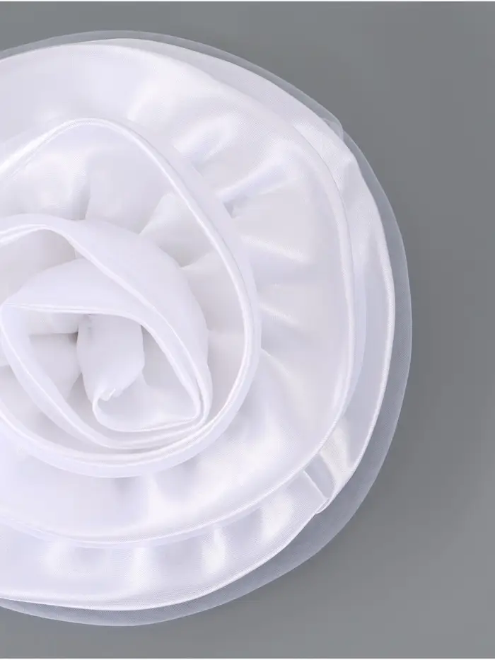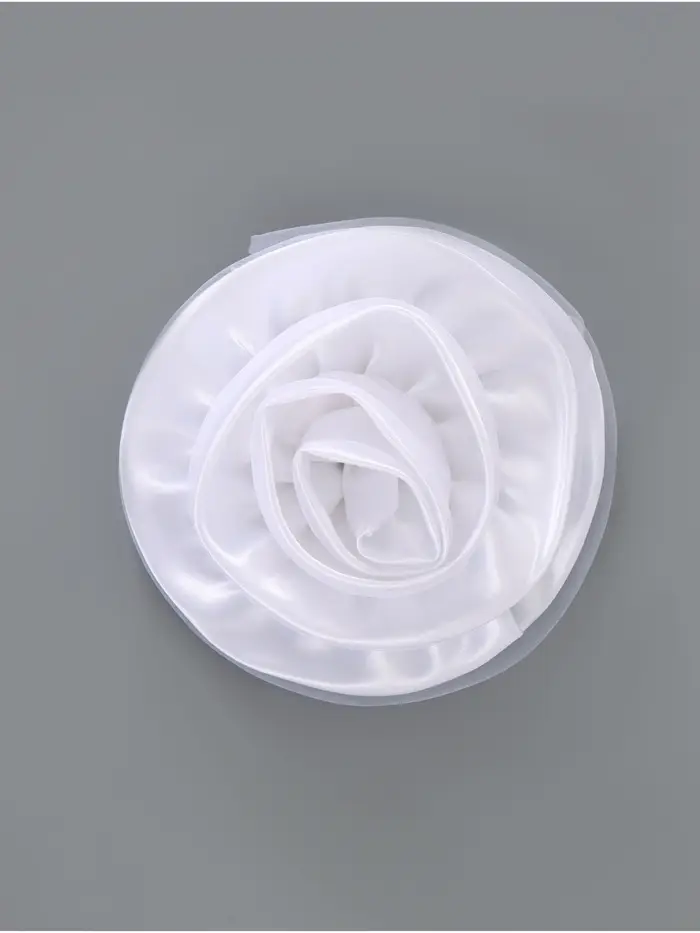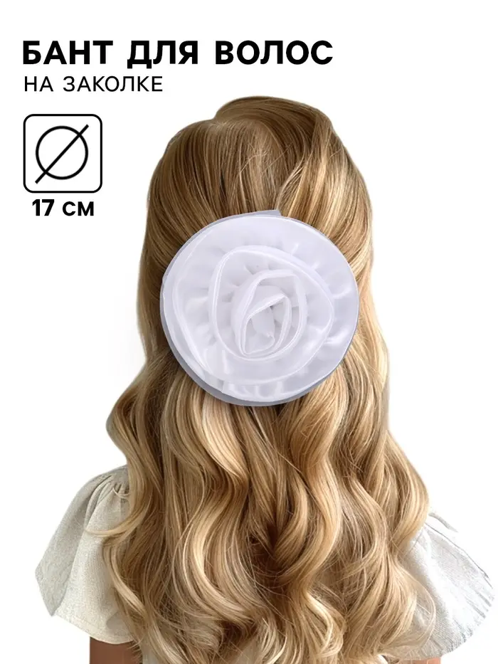 Элегантный объёмный бант из атласной ткани в виде роскошной розы. Диаметр 17 см, что делает его идеальным для праздничных образов: выпускной, свадьба, день рождения или фотосессия. Крепится на прочную эластичную резинку. надёжно фиксируется даже в густых волосах. Подходит для девочек от 3 лет и взрослых.