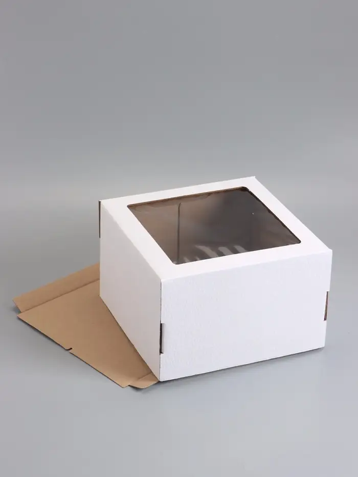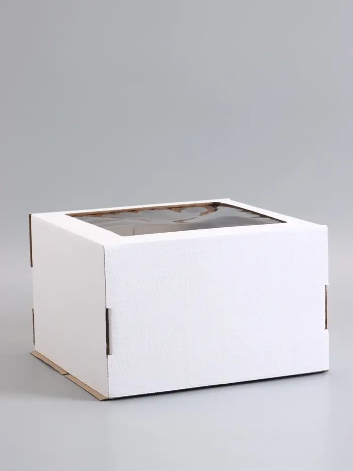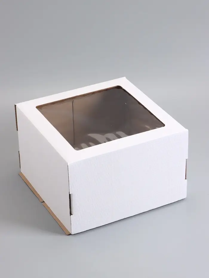 Коробка под торт, белая, с окном, 18 х 18 х 22 см