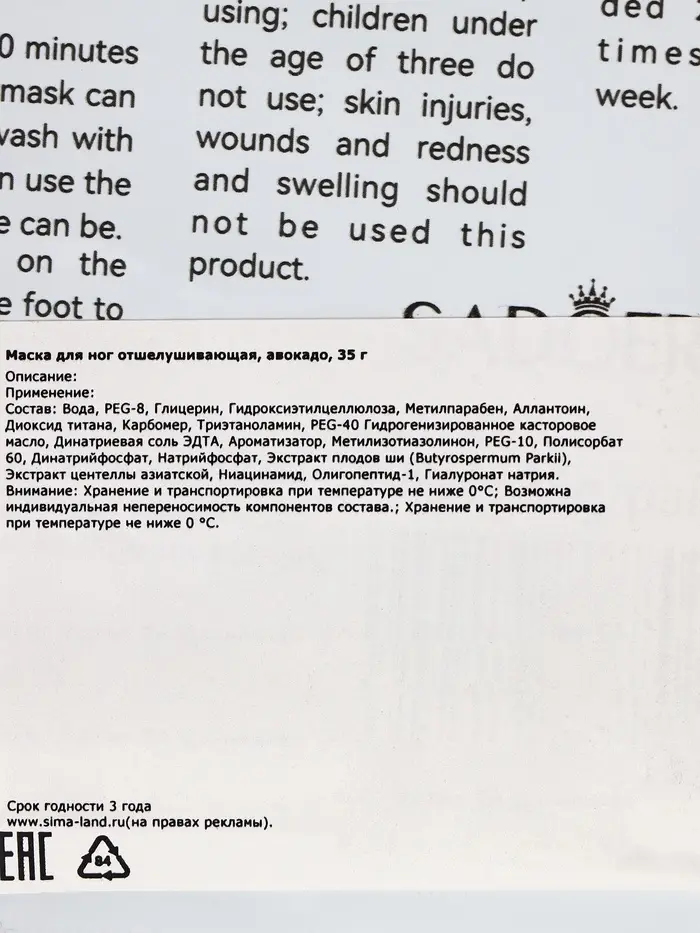 Sadoer отшелушивающая маска-носки для ног с авокадо — это эффективное средство для домашнего ухода за кожей ног, которое мягко удаляет ороговевшие клетки, увлажняет и питает кожу, делая её мягкой, гладкой и ухоженной.