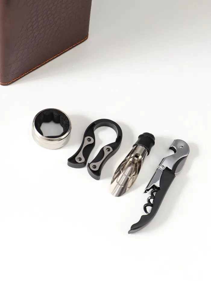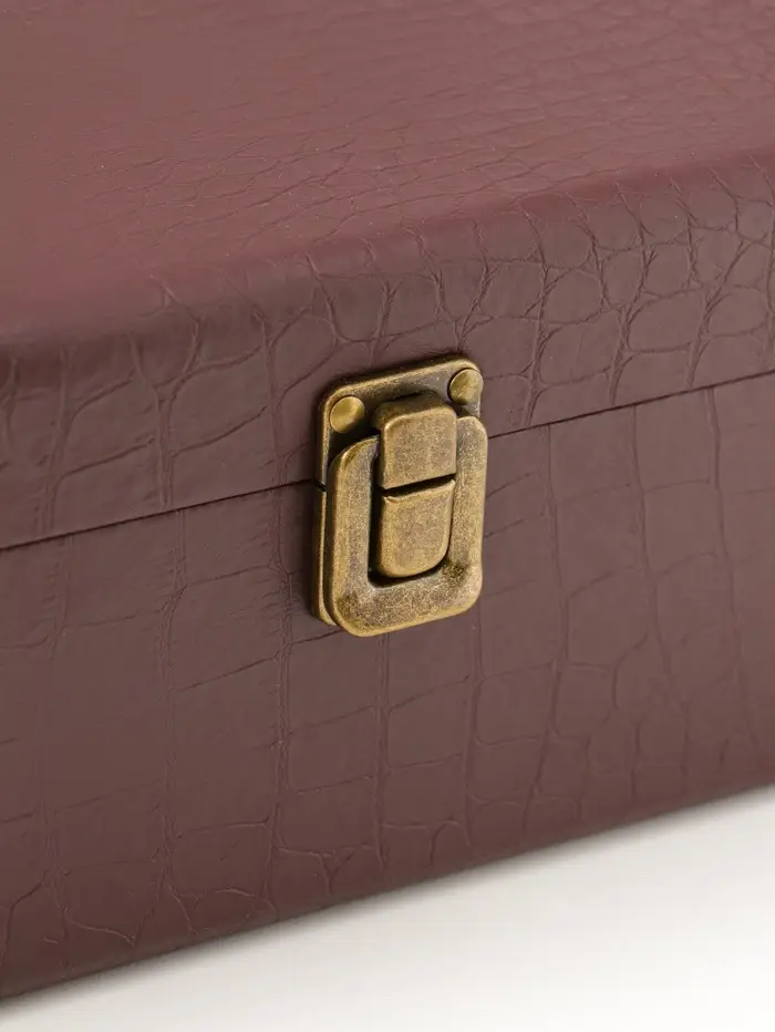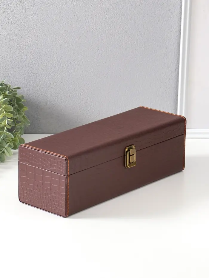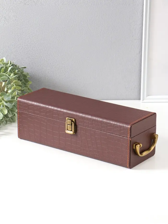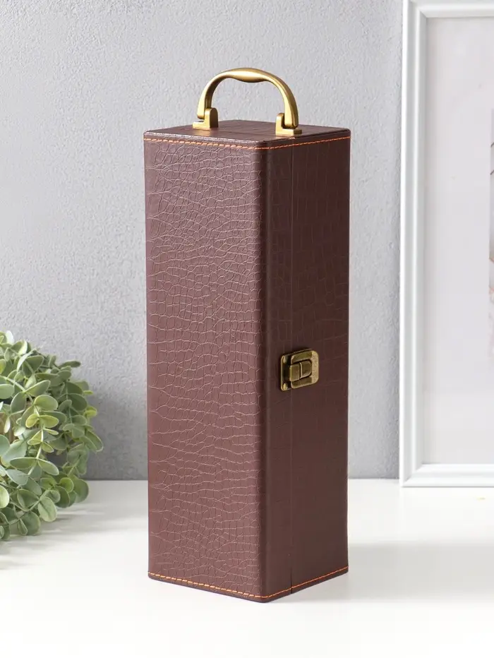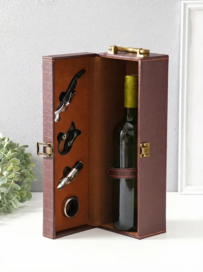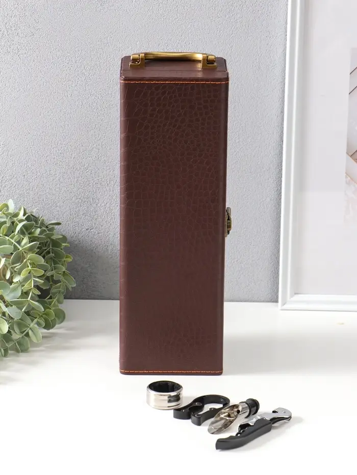 Шкатулка дерево, кожзам под бутылку "Кожа питона" коричневая 4 предмета 35х11х12 см