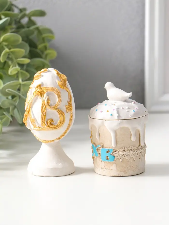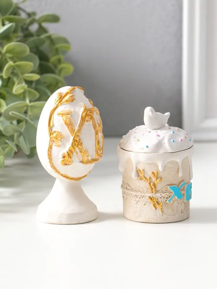 Фигуры набор 2 шт "К Пасхе" кулич 7х5 см, яйцо 9х4 см