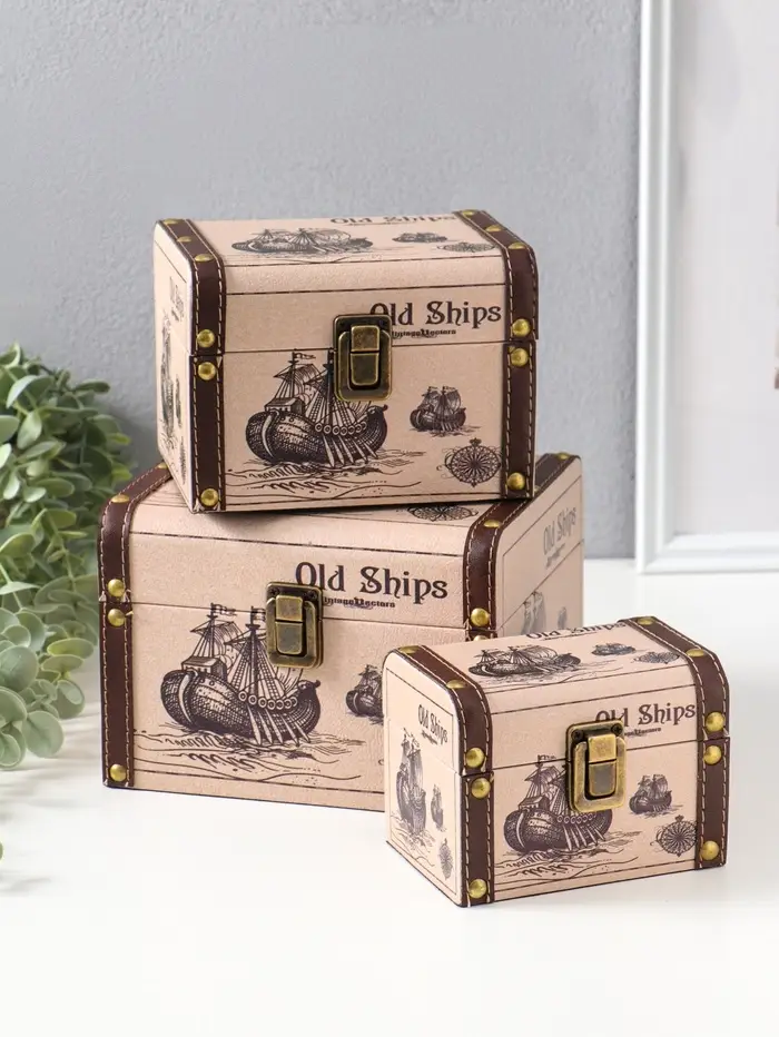 Шкатулка дерево "Старый корабль" набор 3 шт 8,5х12х8,5 12,5х15х11,5 18х15,5х13 см
