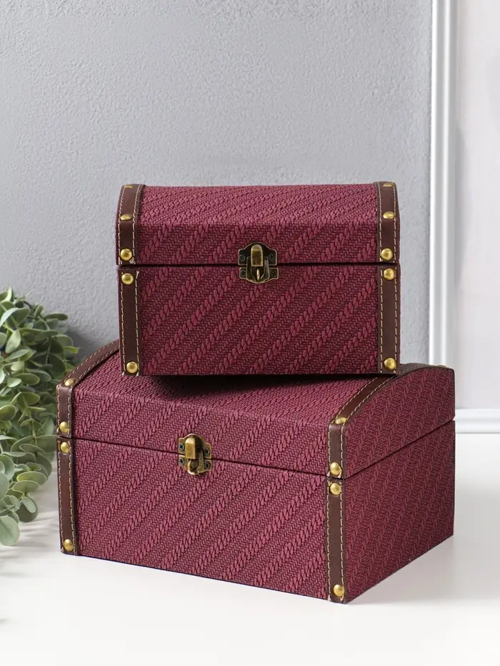Шкатулка дерево "Диагональ" слива набор 2 шт 19х13,5х12 23х17х14 см
