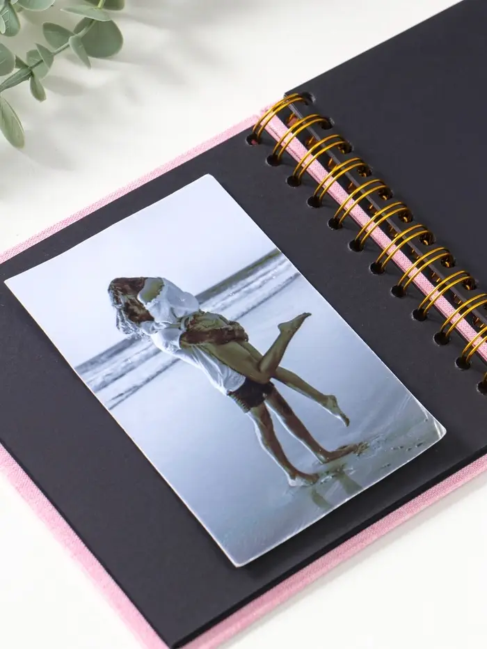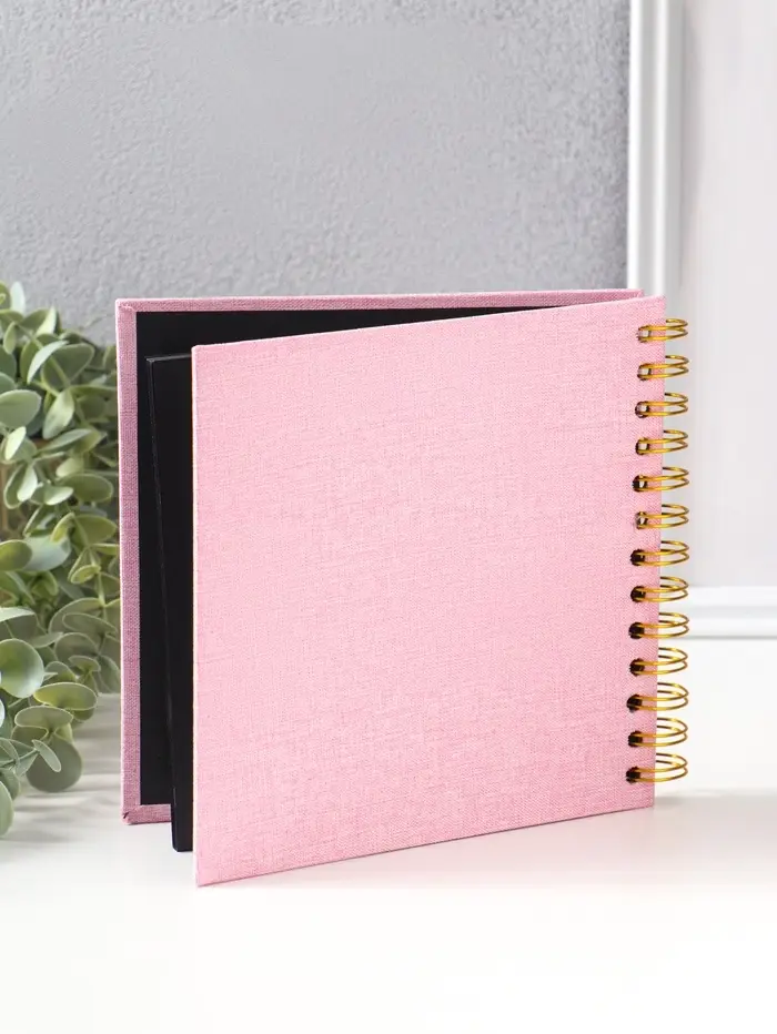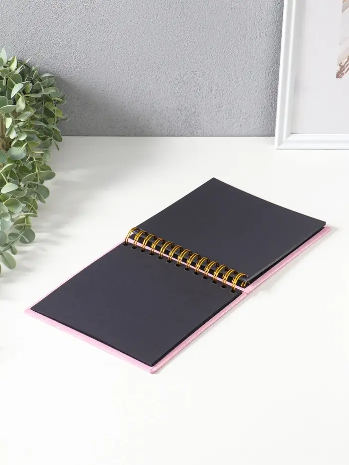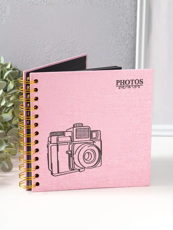 Фотоальбом 20 листов на спирали "Фотоаппарат. Розовый" текстиль, чёрный картон 17,5х17,5 см 109714