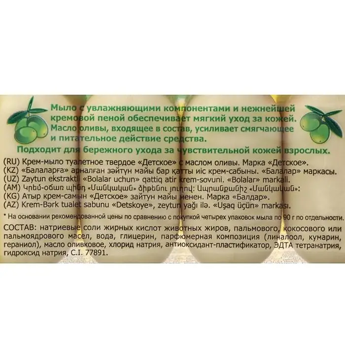 Детское крем-мыло с маслом оливы, 4 шт. по 75 г