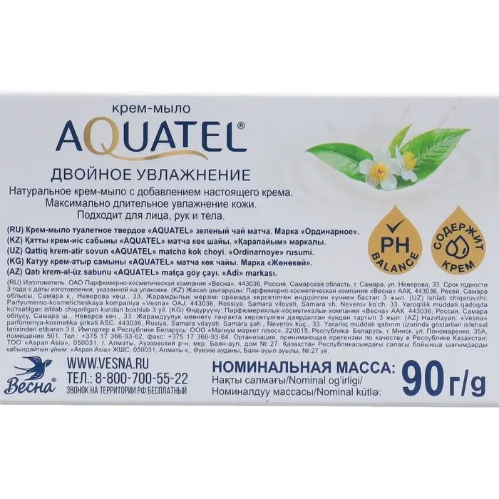 Крем-мыло твердое Aquatel "Зеленый чай матча", 90 г