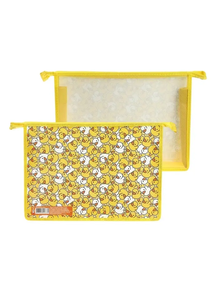 Уточки — тренд, который нравится и детям, и взрослым. Милые жёлтые птицы поднимают настроение и делают обычную школьную папку предметом гордости. Ребёнку будет приятно доставать её на уроках, а родителям — легко находить в портфеле. Но за внешней красотой скрывается серьёзная функциональность. Плотный пластик защищает тетради от заломов и влаги, а молния надёжно удерживает содержимое даже в переполненном рюкзаке. В одно отделение легко помещаются учебники, тетради, альбом и пенал — всё, что нужно для продуктивного учебного дня. Это выбор для родителей, которые хотят порадовать ребёнка красивой и качественной вещью, и для детей, которые любят яркие аксессуары и ценят порядок.