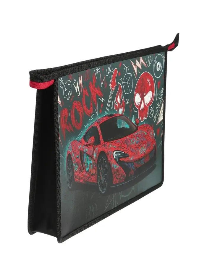 Красный автомобиль на чёрном фоне — это не просто картинка, а символ скорости, энергии и уверенности. Мальчишкам нравится такая эстетика, и они с удовольствием берут в руки папку, которая отражает их интересы. Но главное — она не только красивая, но и функциональная. Молния надёжно удерживает все школьные принадлежности, не давая им выпасть. Пластиковый корпус защищает тетради от заломов и влаги, что особенно важно в дождливую погоду. В одно отделение легко помещаются учебники, тетради, альбом и пенал — всё, что нужно на учебный день. Это выбор для родителей, которые хотят, чтобы ребёнок с удовольствием собирал портфель и чтобы его вещи служили долго и надёжно.