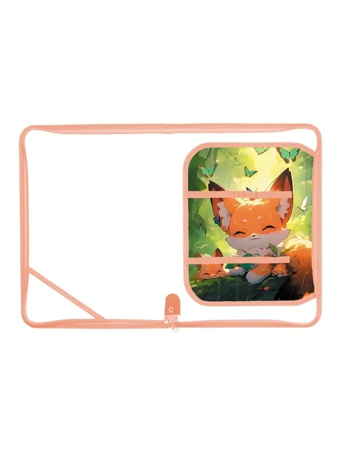 Папка д/труда А4 молния вокруг/откидная планка пластик "Лисята в лесу"