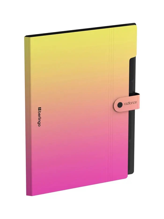 Эта папка формата А4 с ярким дизайном Radience и градиентом от жёлтого к розовому — стильный и функциональный органайзер для документов, тетрадей и бумаг. Пять отдельных отделений позволяют эффективно сортировать материалы по предметам, проектам или категориям. Плотность 600 мкм обеспечивает жёсткость и защиту содержимого от заломов и деформации. Надёжная застёжка на кнопке фиксирует папку и предотвращает выпадение листов. Яркий градиентный дизайн привлекает внимание и делает папку узнаваемой.