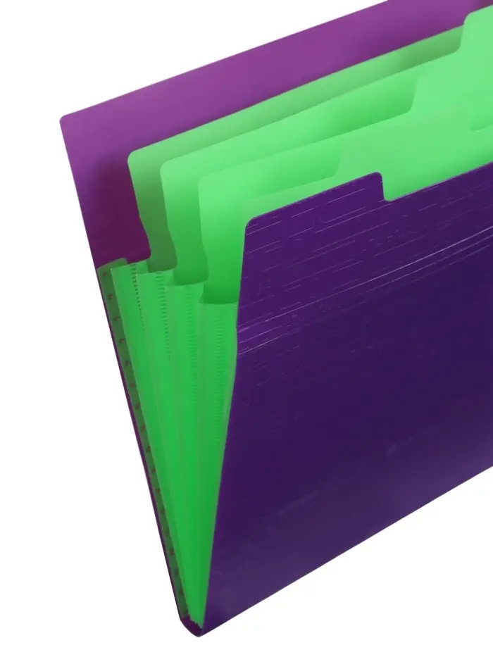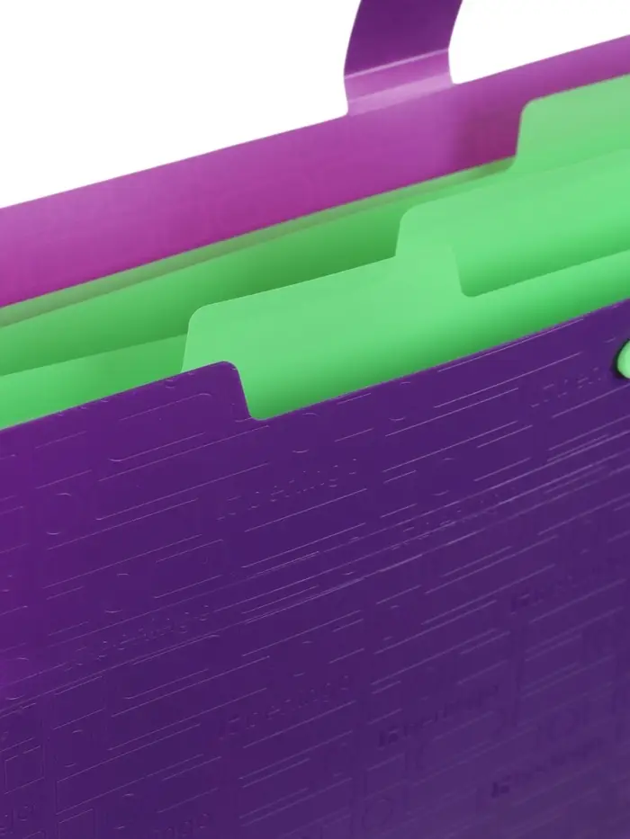 Фиолетовый — цвет творчества, мудрости и вдохновения. Папка такого оттенка выделяется среди стандартных цветов, но остаётся строгой и универсальной. Она подойдёт и школьнице, и студентке, и офисному сотруднику. Пять отделений — это пять способов организовать информацию так, как удобно именно вам. Можно разделить бумаги по предметам, по проектам, по степени важности. Плотность 600 мкм гарантирует, что папка не помнётся и сохранит форму даже при активном использовании. Кнопка надёжно фиксирует содержимое, но при этом открывается легко и быстро. Это выбор для тех, кто ценит порядок, но не готов мириться со скучным дизайном, и для кого важно, чтобы даже рабочие инструменты отражали индивидуальность.
