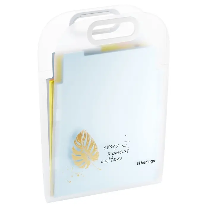 Папка толщиной 650 мкм изготовлена из высококачественного полипропилена с матовой текстурой поверхности «песок», на которой не видно отпечатков пальцев и мелких царапин.