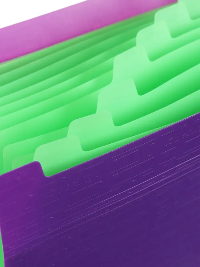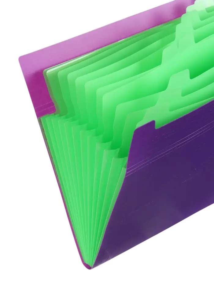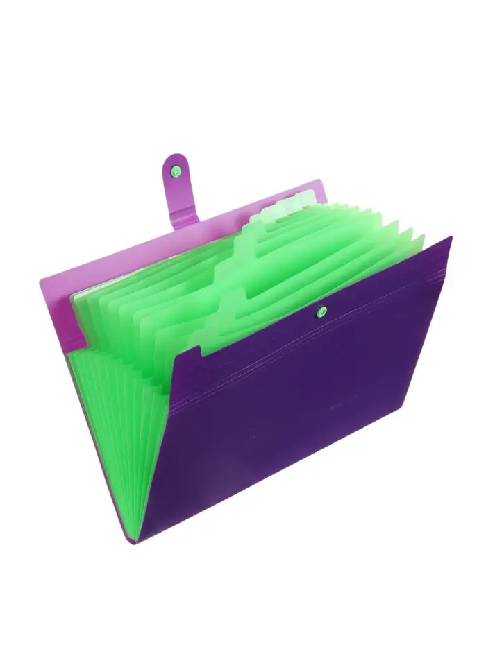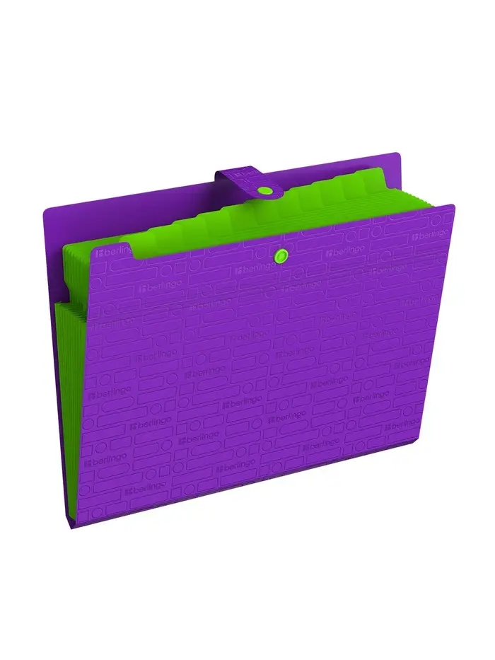 12 отделений — это максимум возможностей для организации информации. Можно разделить документы по 12 предметам, по 12 проектам, по 12 месяцам или по 12 категориям. Такая папка незаменима для студентов с насыщенной программой, для преподавателей, для всех, кто работает с большим количеством разнородной информации и нуждается в быстром доступе к каждому блоку. Плотность 600 мкм гарантирует, что папка сохранит форму даже при полной загрузке, не помнётся и не деформируется. Фиолетовый цвет выделяет её среди стандартных чёрных и синих папок, добавляя индивидуальности, но при этом остаётся строгим и благородным. Кнопка надёжно фиксирует все отделения, но открывается легко и быстро. Это выбор для тех, кто ценит порядок, эффективность и не боится проявлять свой стиль даже в рабочих инструментах.