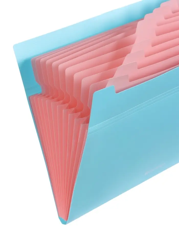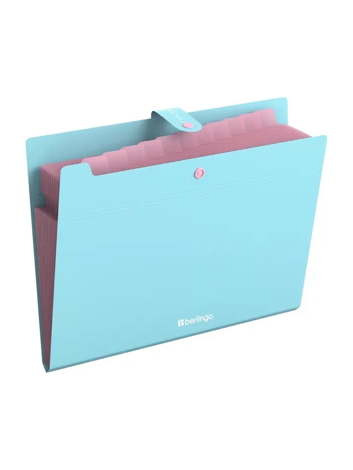 Голубой — цвет неба, воды и спокойствия. Папка такого оттенка создаёт ощущение лёгкости и простора, даже когда внутри много документов. 12 отделений — это максимум возможностей для организации информации. Можно разделить бумаги по 12 предметам, по 12 проектам, по 12 месяцам или по 12 категориям. Такая папка незаменима для студентов, преподавателей, офисных сотрудников — для всех, кто работает с большим количеством разнородной информации и нуждается в быстром доступе к каждому блоку. Плотность 600 мкм гарантирует, что папка сохранит форму даже при полной загрузке, не помнётся и не деформируется. Кнопка надёжно фиксирует все отделения, но открывается легко и быстро. Это выбор для тех, кто ценит порядок, эффективность и любит окружать себя спокойными, гармоничными цветами.