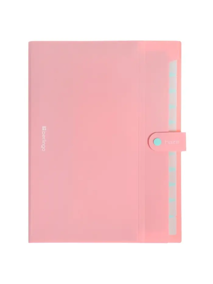 Папка А4 Haze, 12 отделений, 600 мкм, на кнопке, розовая