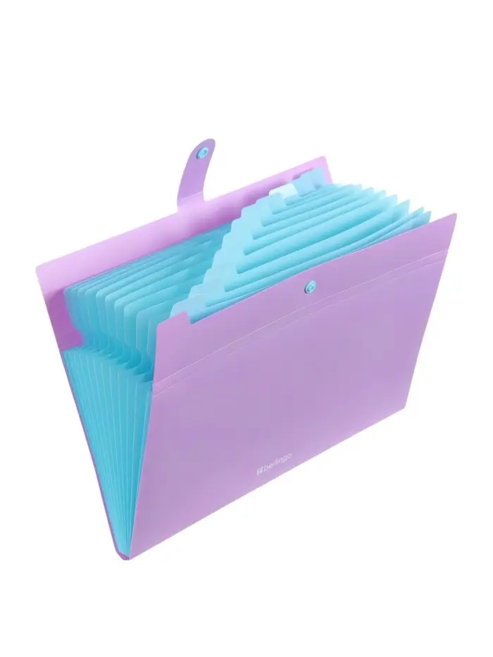 Сиреневый — цвет вдохновения, мечтательности и благородства. Папка такого оттенка выделяется среди стандартных цветов, но остаётся элегантной и сдержанной. 12 отделений — это максимум возможностей для организации информации. Можно разделить бумаги по 12 предметам, по 12 проектам, по 12 месяцам или по 12 категориям. Такая папка незаменима для студентов, преподавателей, офисных сотрудников — для всех, кто работает с большим количеством разнородной информации и нуждается в быстром доступе к каждому блоку. Плотность 600 мкм гарантирует, что папка сохранит форму даже при полной загрузке, не помнётся и не деформируется. Кнопка надёжно фиксирует все отделения, но открывается легко и быстро. Это выбор для тех, кто ценит порядок, эффективность и любит окружать себя красивыми, утончёнными цветами, которые вдохновляют и настраивают на творческий лад.
