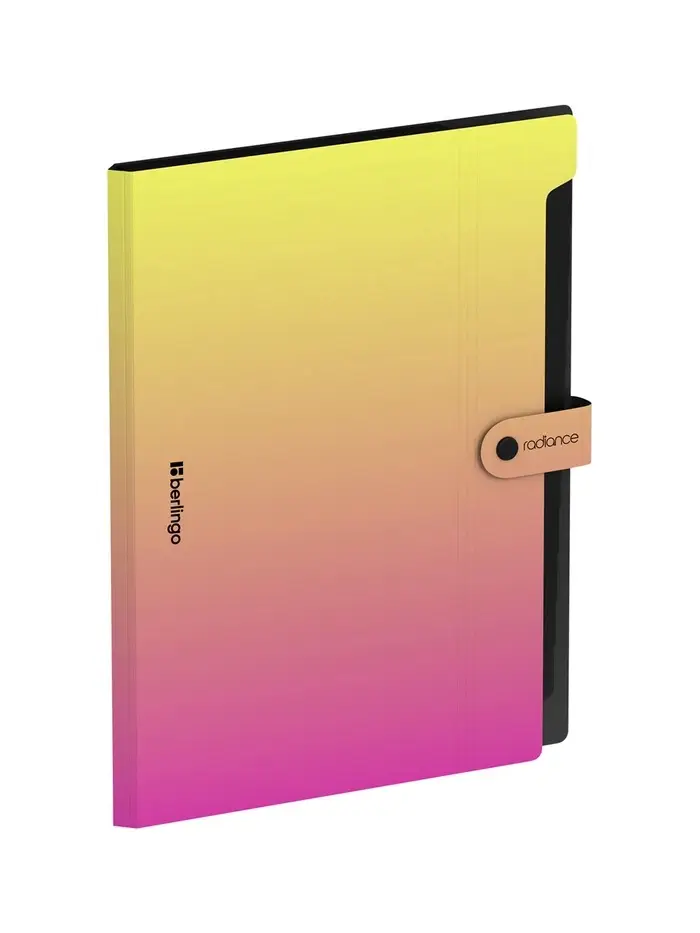 Эта папка формата А4 Radiance с двенадцатью отделениями и ярким градиентом от жёлтого к розовому — стильное и функциональное решение для систематизации большого объёма документов. Плотность 600 мкм обеспечивает жёсткость и надёжную защиту содержимого от заломов и деформации. Застёжка на кнопке фиксирует папку и предотвращает выпадение листов. Двенадцать отдельных секций позволяют эффективно сортировать материалы по предметам, проектам или категориям. Эффектный градиент создаёт солнечное, энергичное настроение.