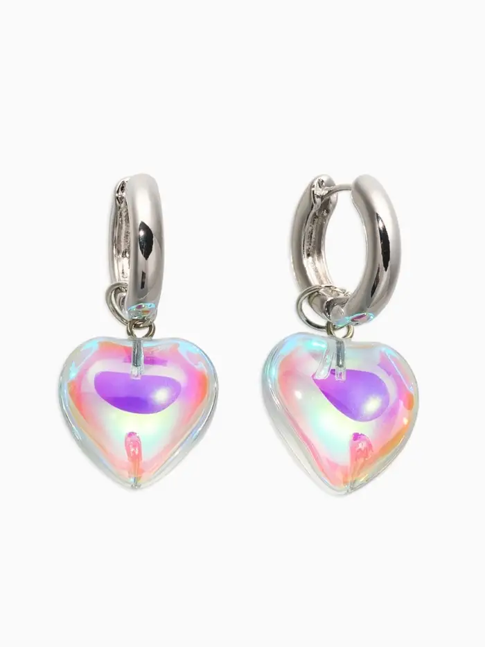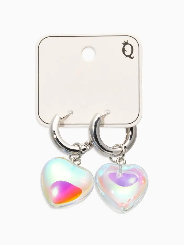 Серьги со съёмным элементом "Сердце", цвет радужный в серебре