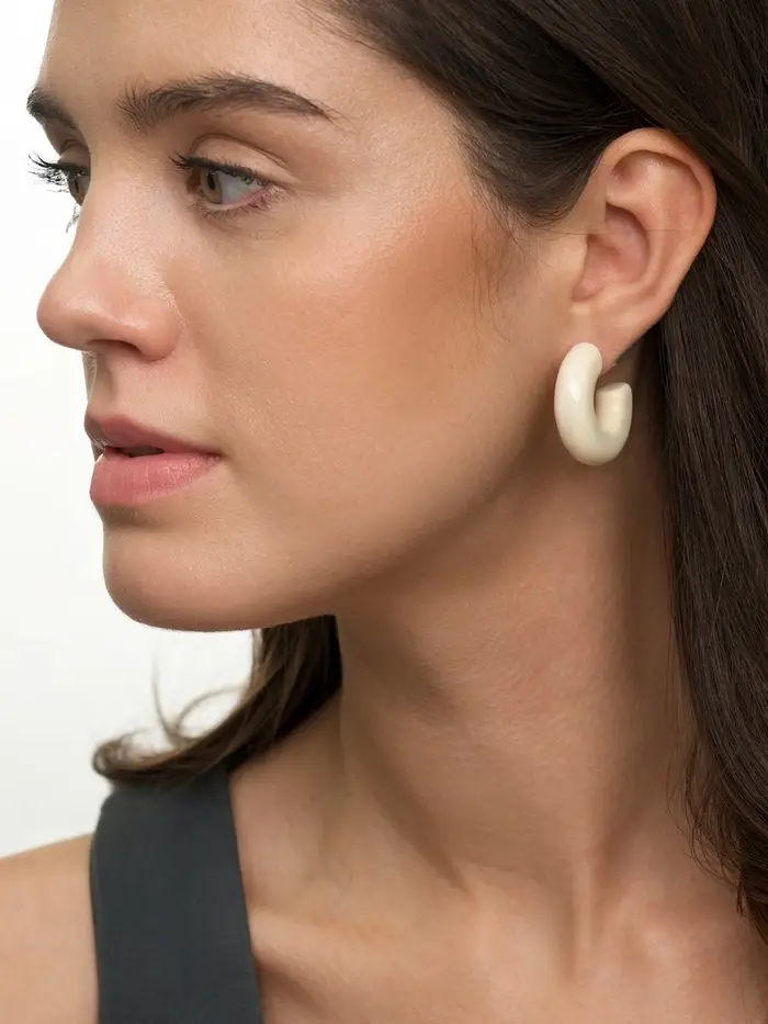 Серьги «Полукольцо с бусиной №10» — это современное прочтение классической формы, которое гармонично дополнит ваш повседневный или деловой гардероб. Благородный бежевый оттенок с мягкими разводами имитирует фактуру натурального камня, придавая аксессуару элегантный и дорогой вид.