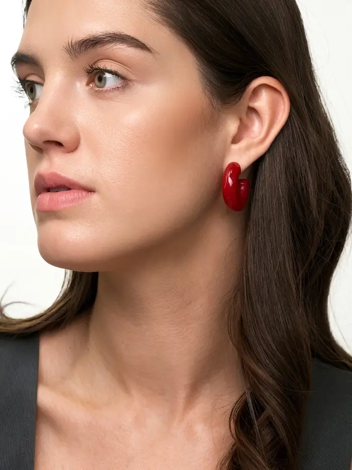 Серьги «Полукольцо с бусиной №10» — это яркий и стильный аксессуар, который добавит вашему образу глубины и выразительности. Насыщенный бордовый цвет в сочетании с текстурой, напоминающей натуральный камень, делает это украшение идеальным акцентом как для делового костюма, так и для вечернего платья.