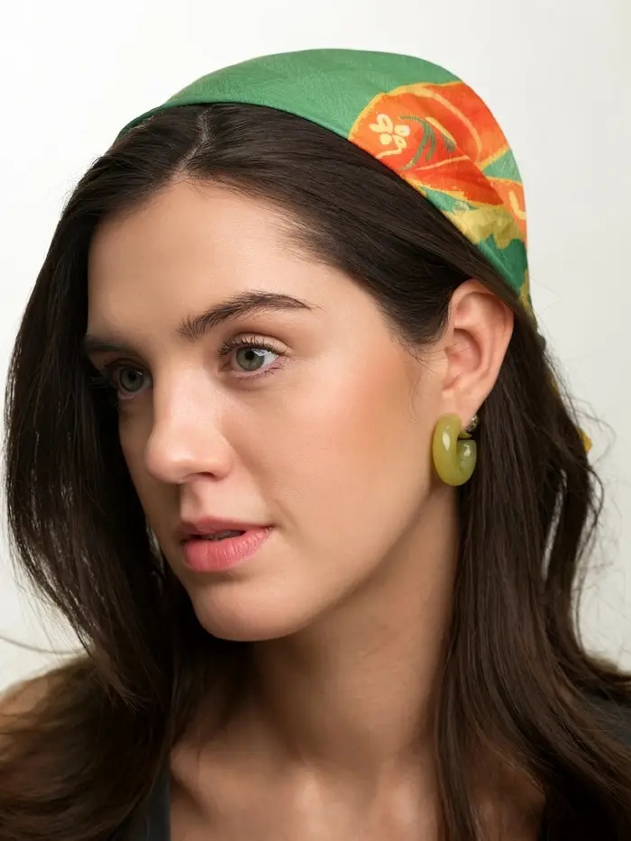 Серьги акрил «Полукольцо с бусиной №14», зелёные, болотные в золоте