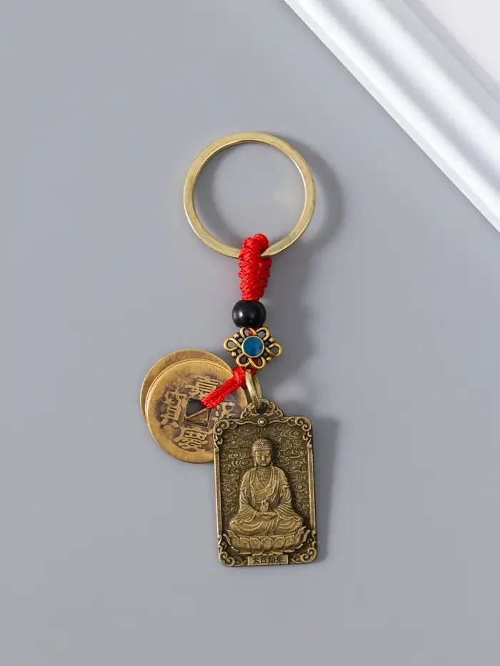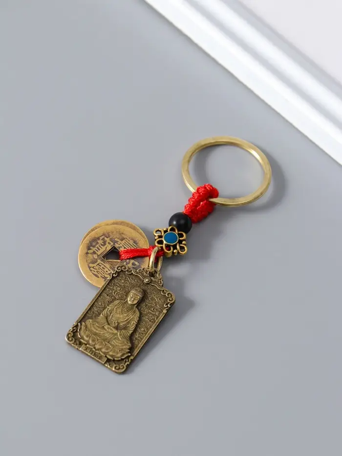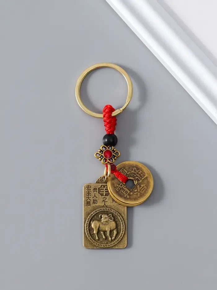 Брелок металл нэцке "Баран и 5 монет" 2 стороны 0,3х2,4х7,5 см