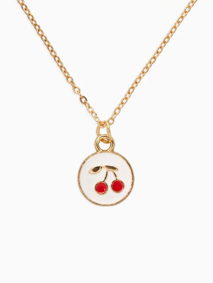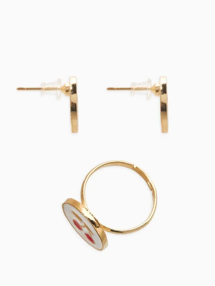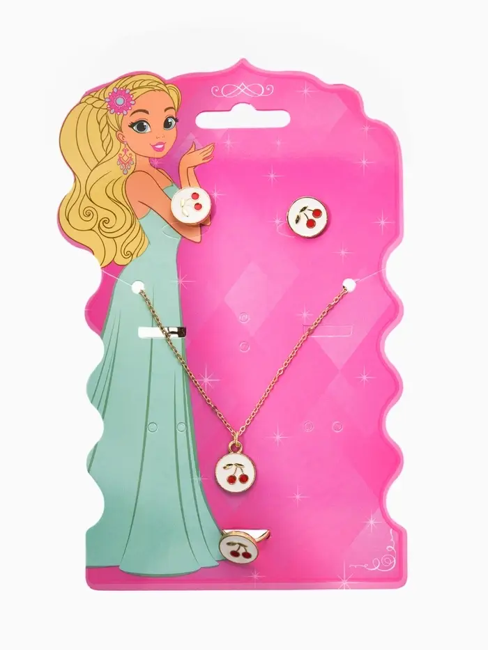 Набор детский "Выбражулька" 3 пред-а: кулон, кольцо, серьги, вишня, бело-красный в золоте