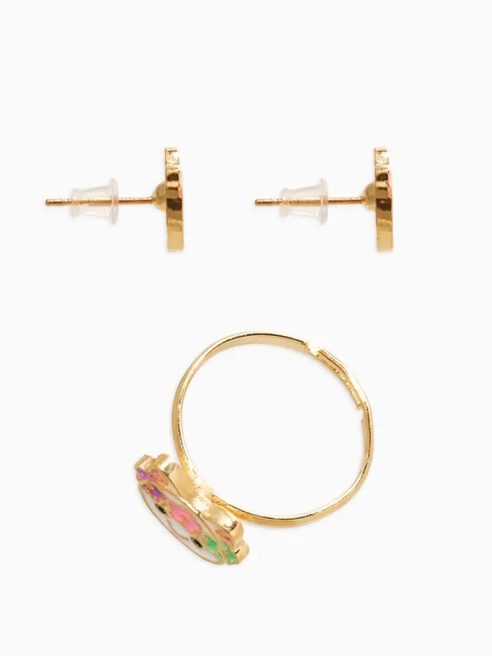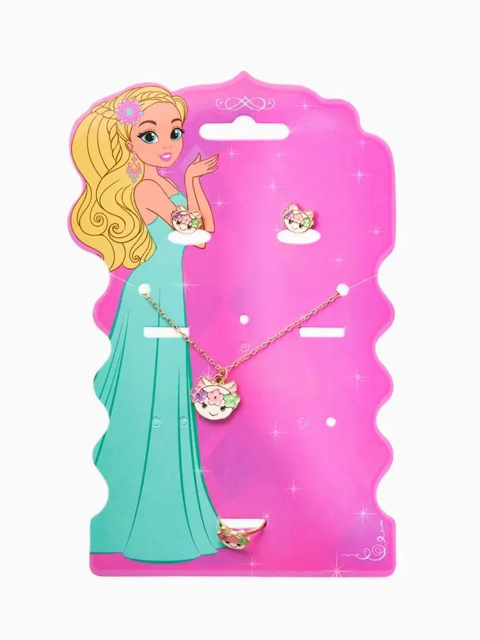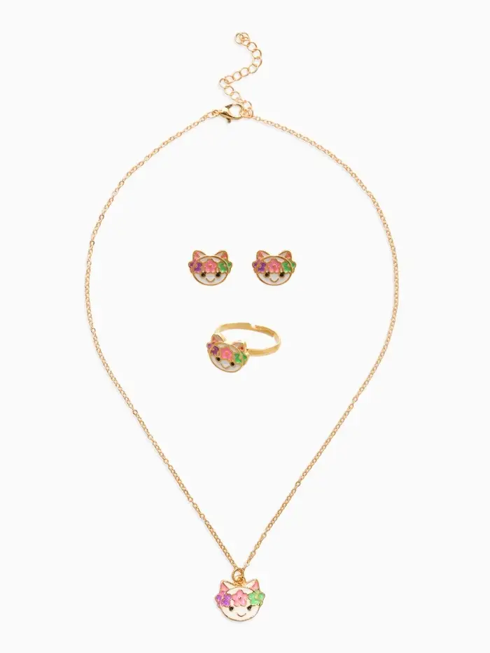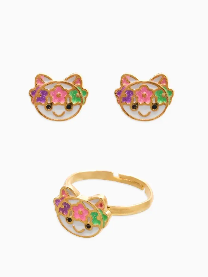 Набор детский "Выбражулька" 3 пред-а: кулон, кольцо, серьги, котик, разноцветный в золоте