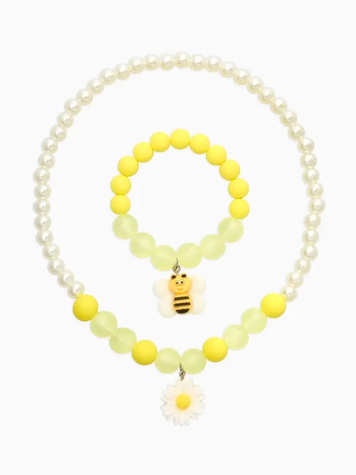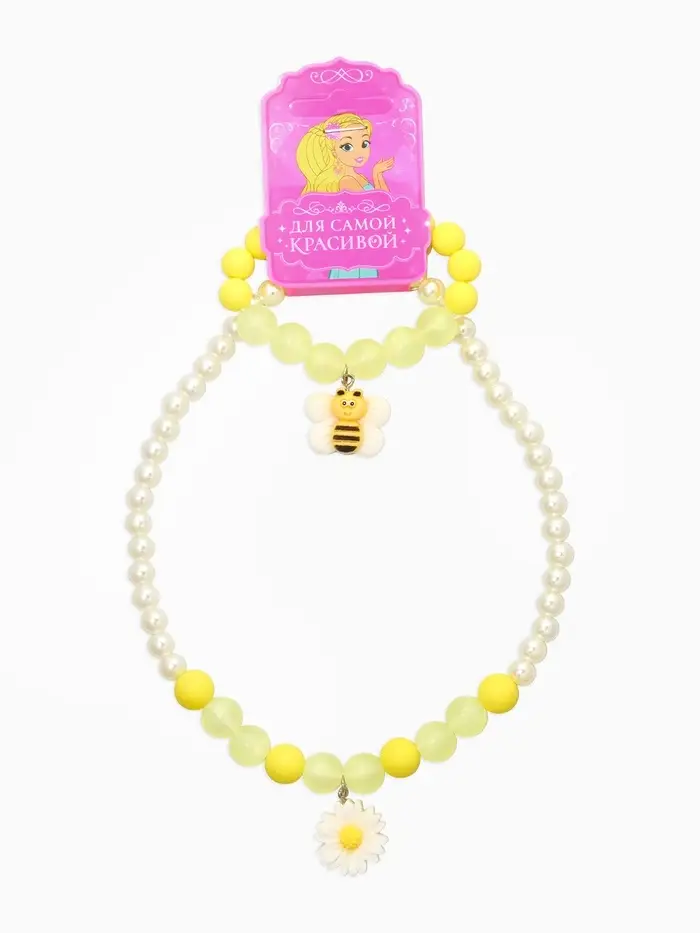 Набор детский "Выбражулька" 2 пред-а: бусы, браслет, пчелка, бело-желтый