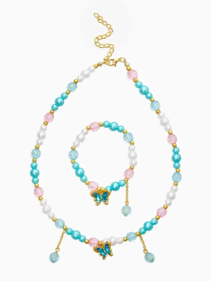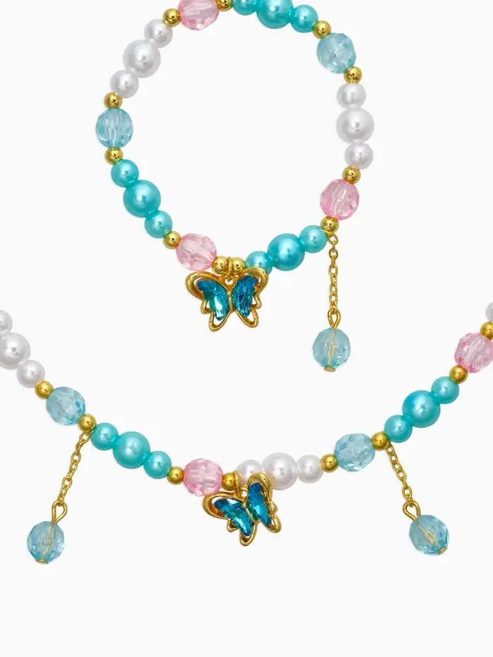 Набор детский "Выбражулька" 2 пред-а: бусы, браслет, бабочка с бусиной, розово-голубой