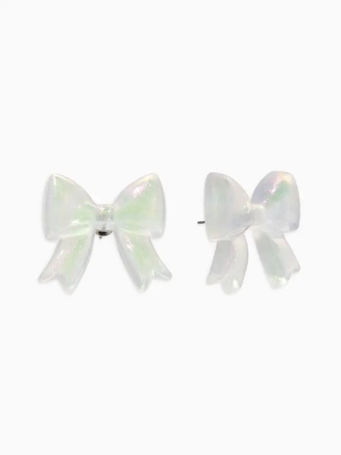 Серьги пластик "Бантик" перламутровый, цвет белый радужный