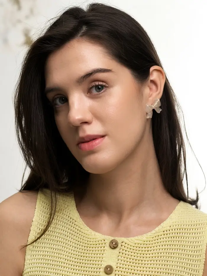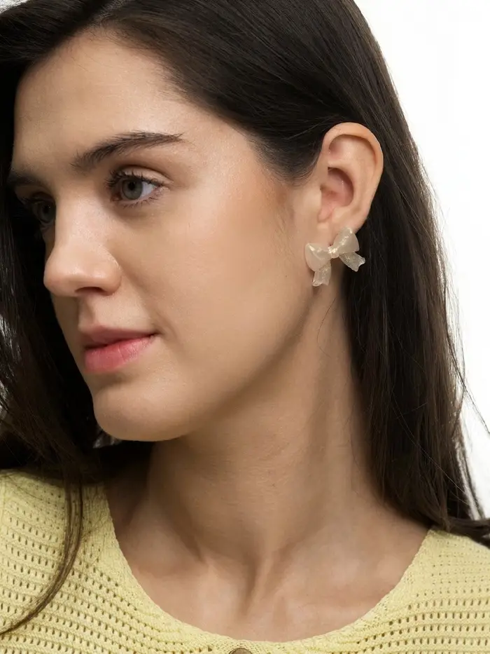 Серьги «Бантик» — это воплощение нежности и романтики в одном аксессуаре. Бежевый перламутровый оттенок с радужным отливом создает эффект мягкого сияния, который освежает лицо и добавляет образу легкости.