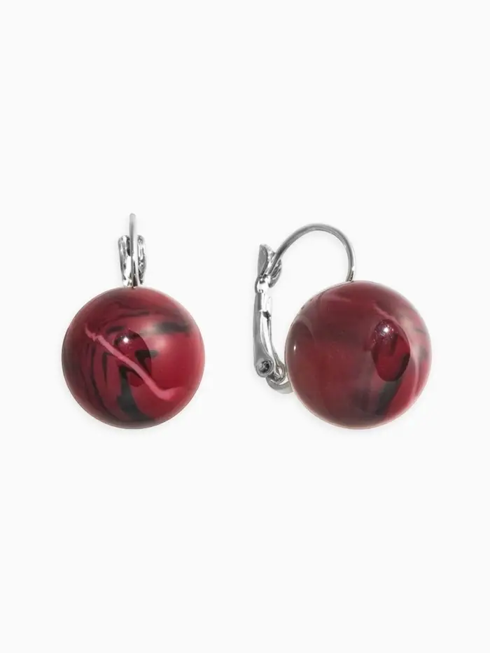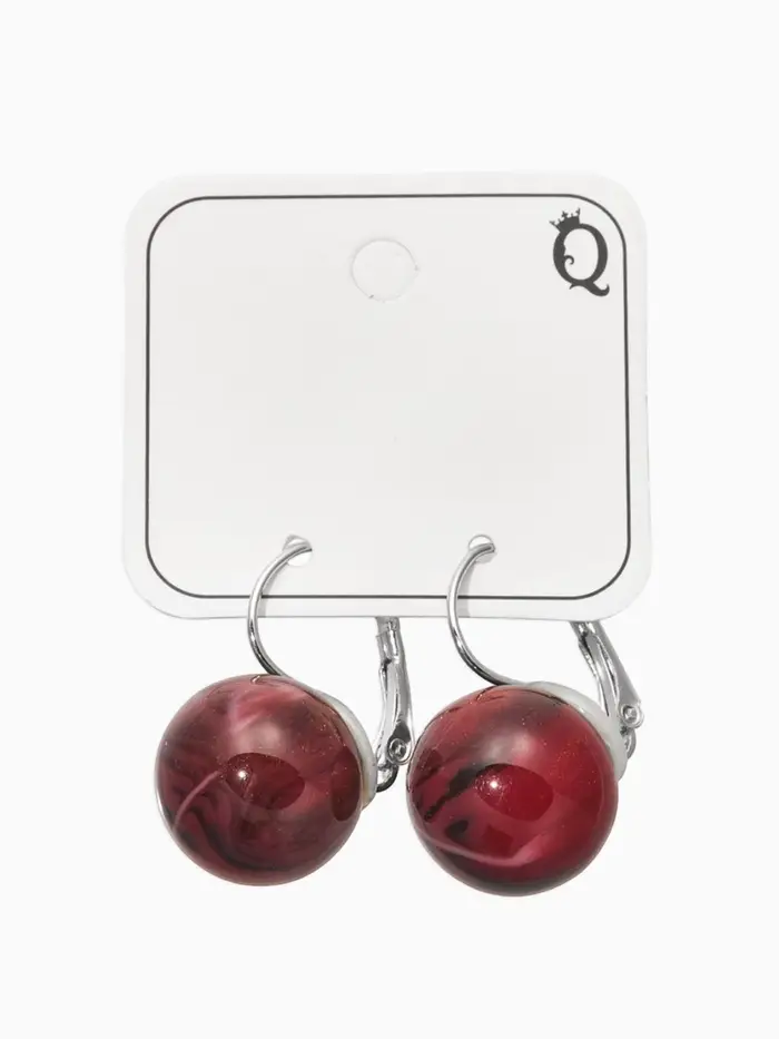 Серьги пластик "Шар №16" с разводами и блёстками, цвет бордовый в серебре