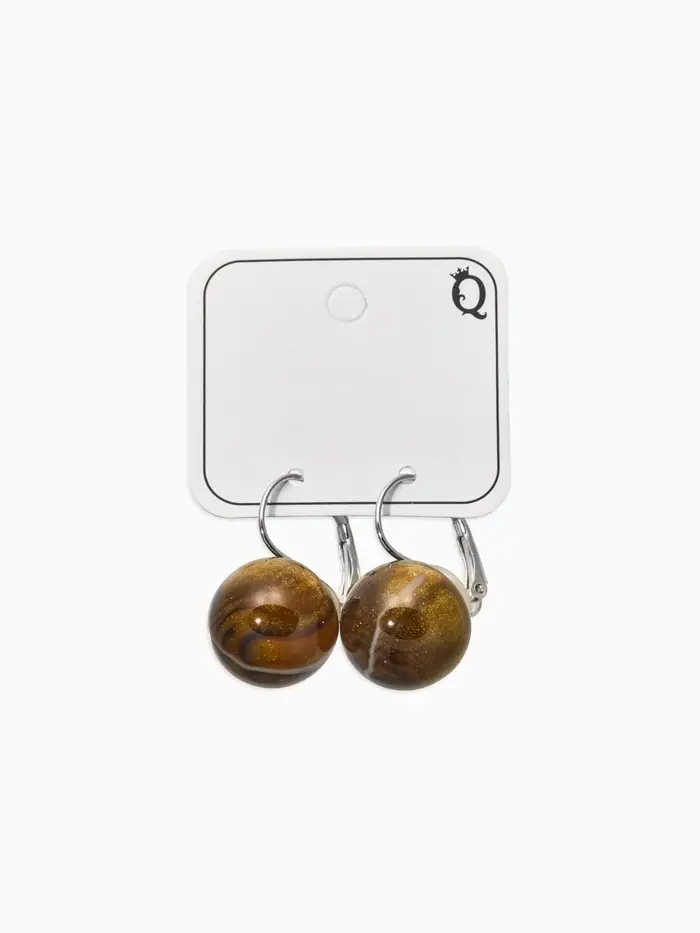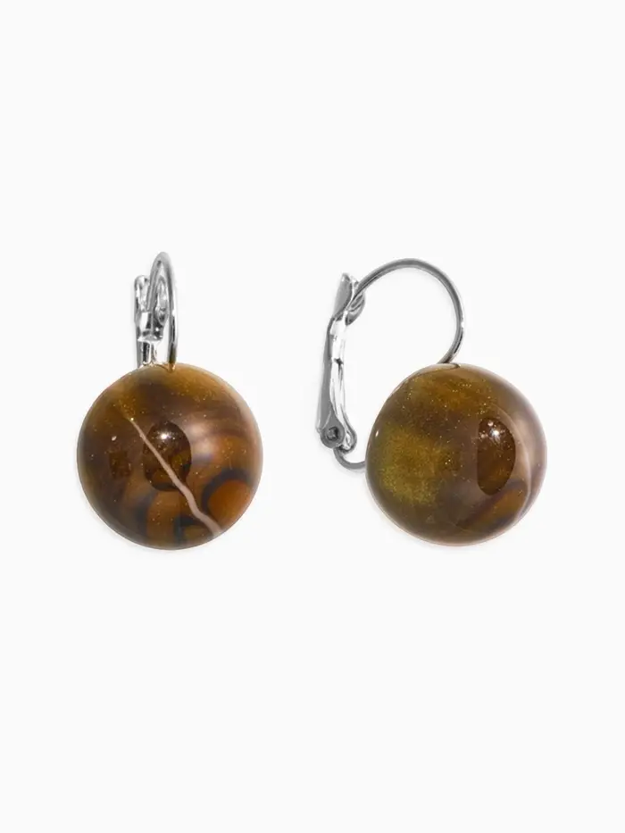Серьги пластик "Шар №16" с разводами и блёстками, цвет тигровый глаз в серебре