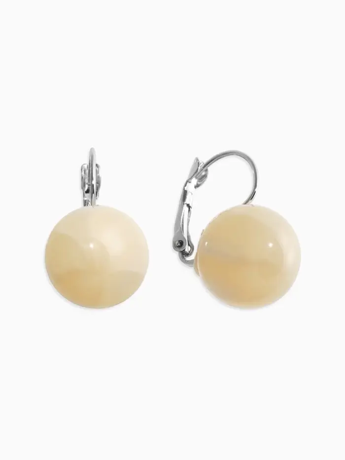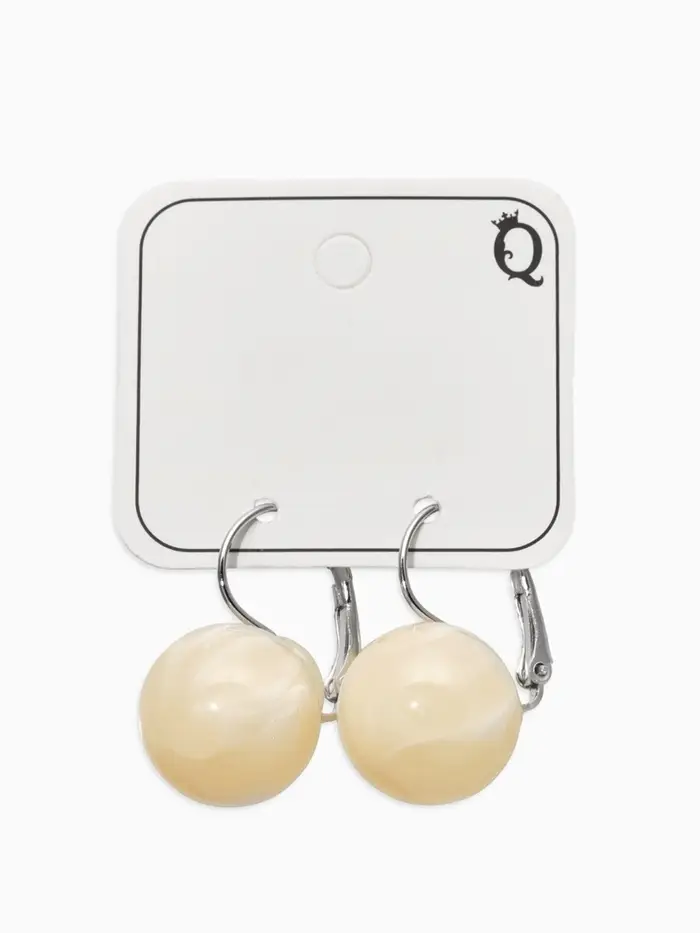 Серьги пластик "Шар №16" с разводами и блёстками, цвет молочный в серебре