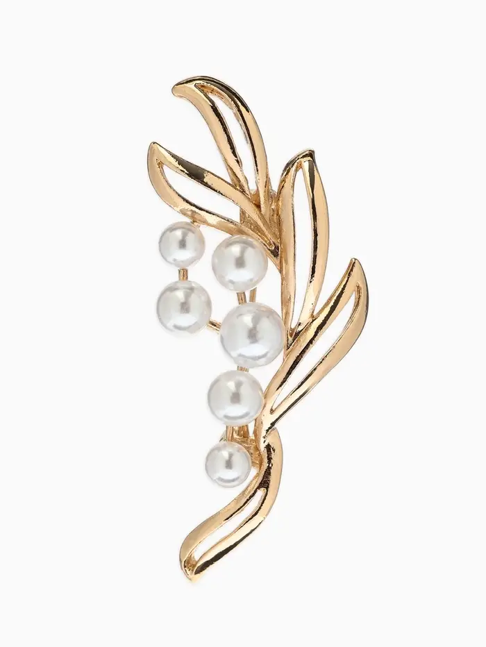 Брошь «Ветвь», жемчуг, цвет белый в золоте