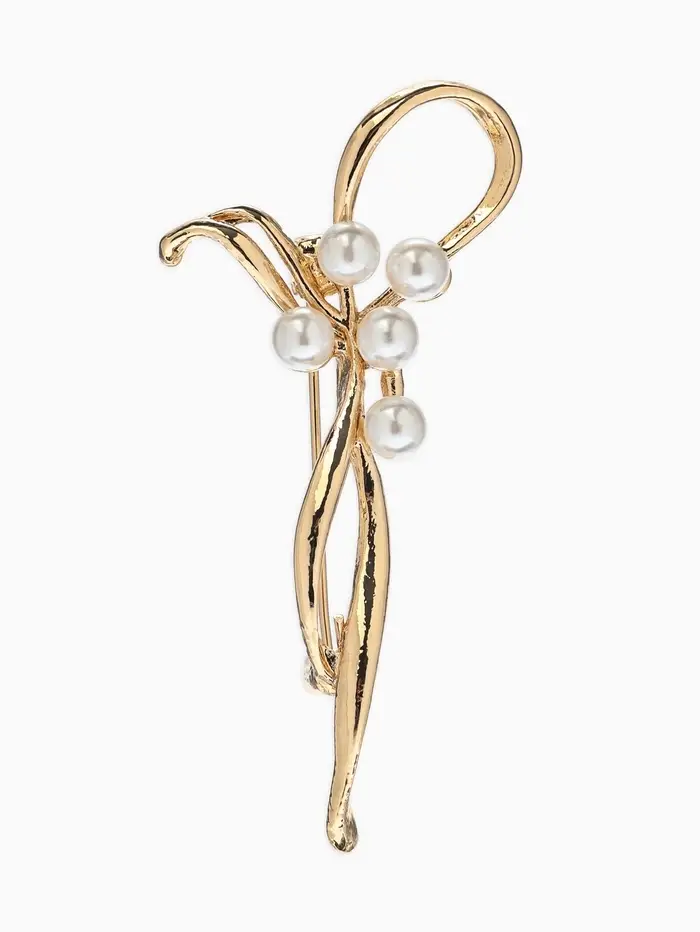 Брошь «Бантик», жемчуг, цвет белый в золоте
