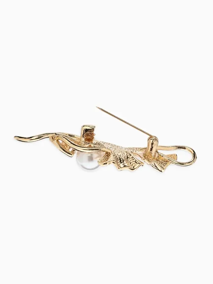 Брошь «Цветок» калла, жемчуг, цвет белый в золоте
