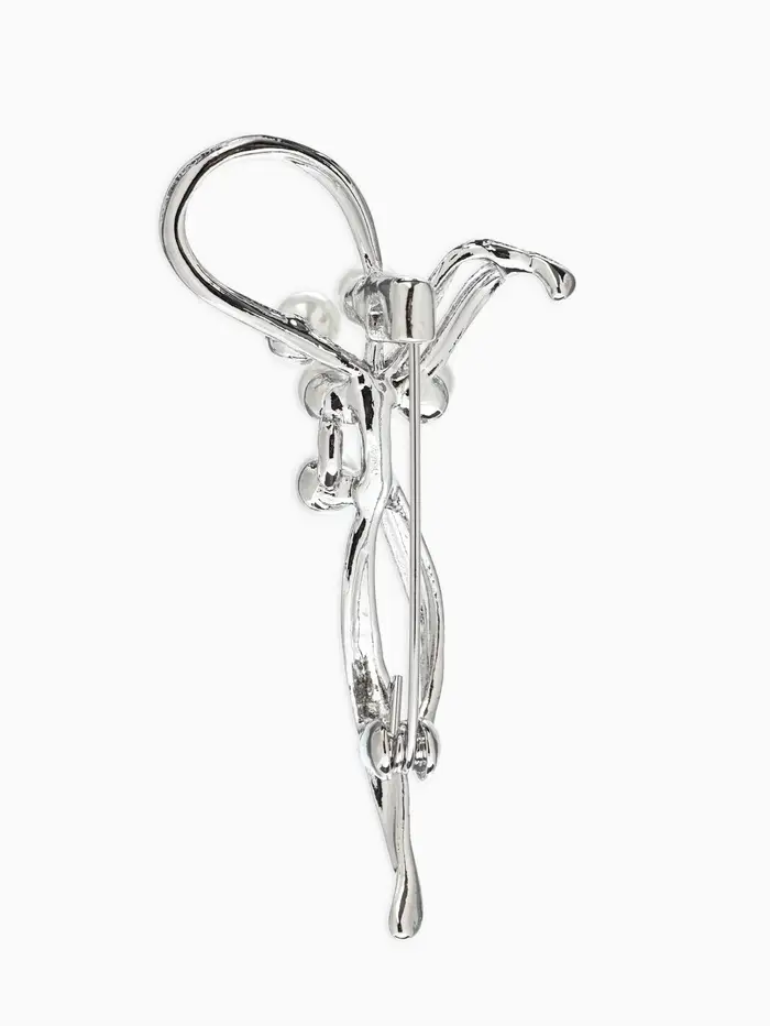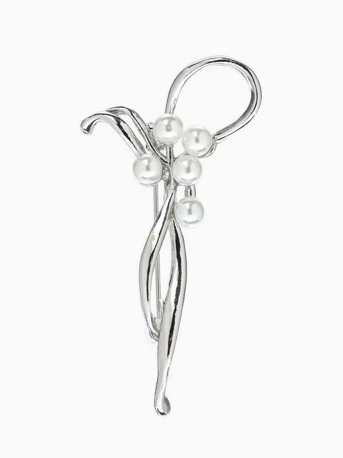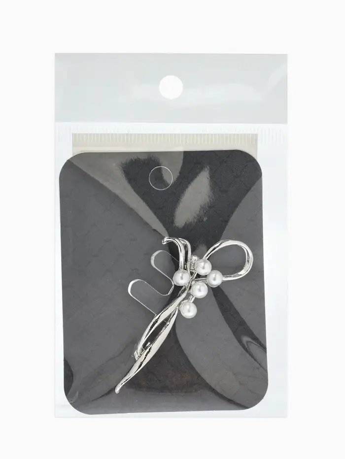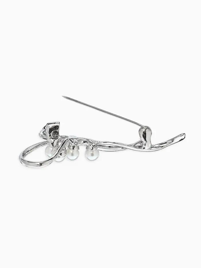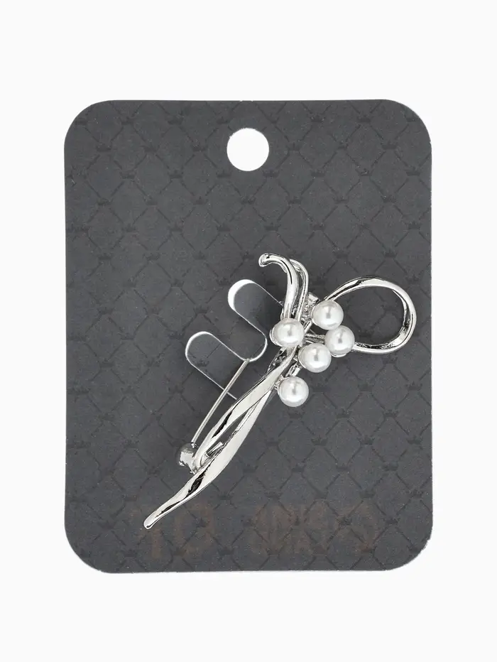 Брошь «Бантик», жемчуг, цвет белый в серебре