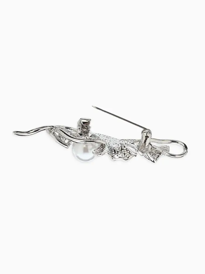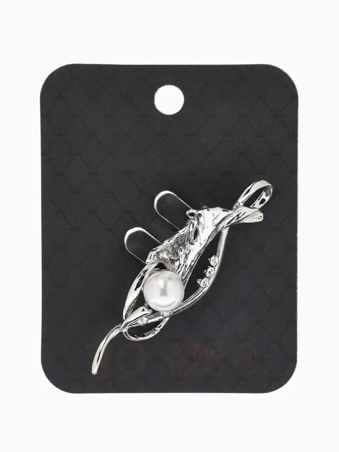 Брошь «Цветок» калла, жемчуг, цвет белый в серебре