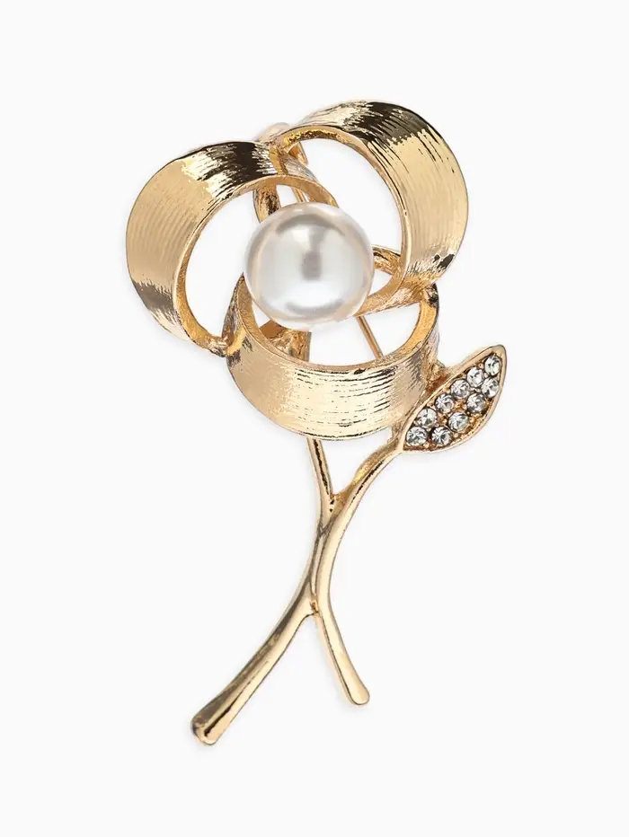 Брошь «Цветок» тринити, жемчуг, цвет белый в золоте